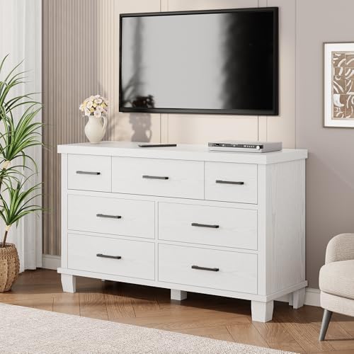 Dresser for Bedroom with 7 Drawers, Modern Chest of Drawers Closet with Metal Handle, Wooden Dresser Organizer, for Bedroom, Living Room